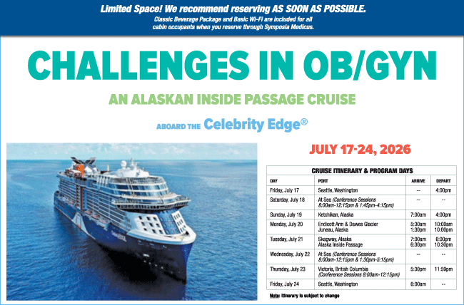 You are sure to enjoy our conference on Challenges in OB/GYN while sharing ideas and experiences with colleagues from across the country in the beautiful setting of Alaska.